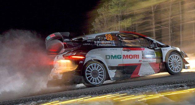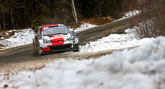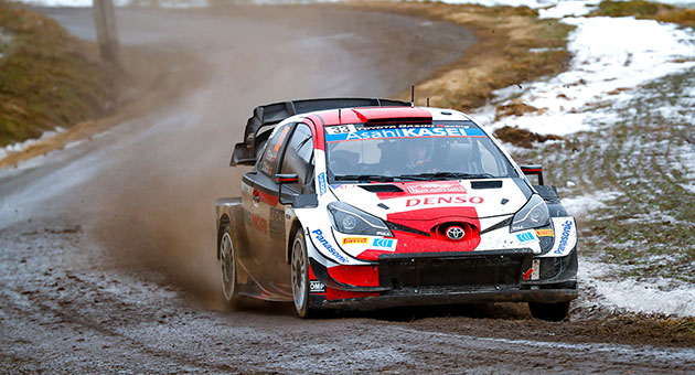 奥吉尔(Sébastien Ogier)在开场赛的SS9中领先第2名埃文斯(Elfyn Evans)17.8秒获得第1,并取代埃文斯(Elfyn Evans)占据总分第1名。SS10赛段路面冰雪积留之处更多,越是车轮碾过越发光滑,这使出场顺序靠后的奥吉尔(Sébastien Ogier)无法充分获得轮胎抓地力,结果落后第1名42秒,而出场顺序更晚的埃文斯(Elfyn Evans)落后了46秒。得益于前两个比赛日他们领先很多,因此未失总分前两名的宝座。在SS11赛段埃文斯(Elfyn Evans)再获第1,奥吉尔(Sébastien Ogier)相差1.3秒获得第2,两人总分排名没有发生改变。前日居总分第4名的罗万佩拉(Kalle Rovanperä)今天在SS9赛段上升到总分第3名,也为车队今天包揽前3名的成绩立下了功劳。